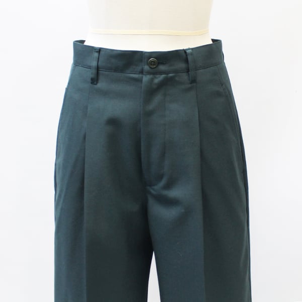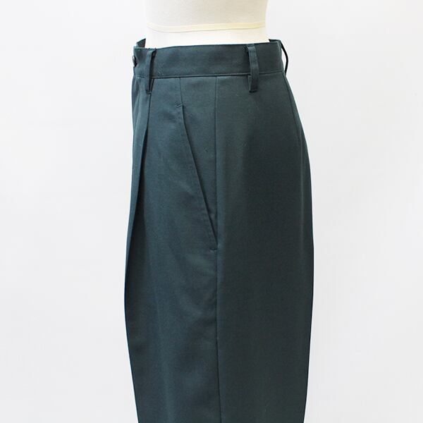 ワンタックとセンタープレスが入っていて、とろみのあるウールポリエステル(TW)の生地を使用しているので、カジュアル感も残しつつ、綺麗めな印象で穿けます。