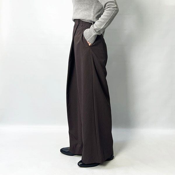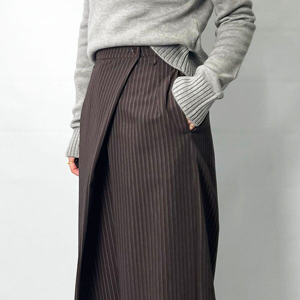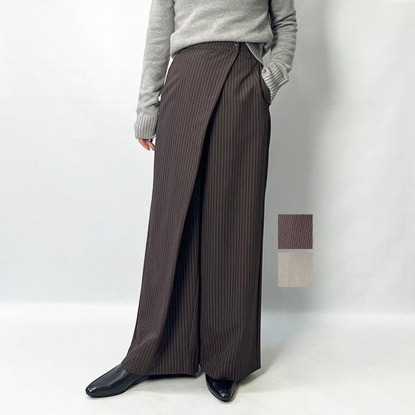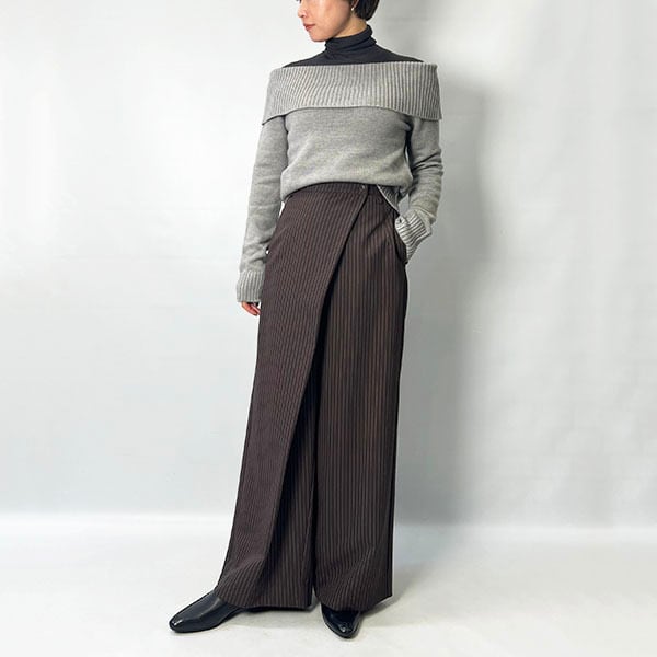 まるでスカートのようなたっぷりとした分量感が目を惹くラップデザインのワイドパンツ。