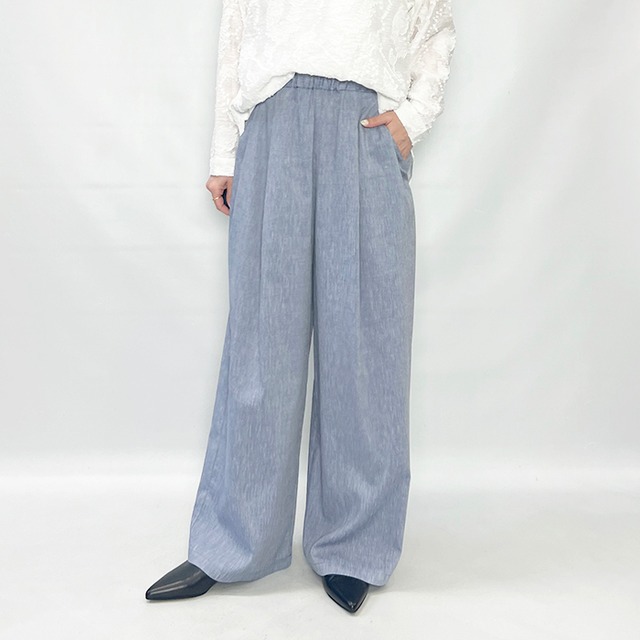 身体のラインをカバーするストレスフリーな履き心地ながら、タックが作り出す縦のドレープがすっきり見えを実現。
